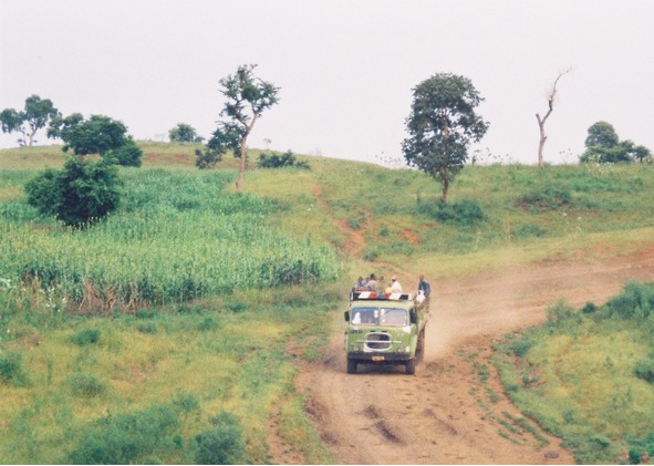 Становилось жарче. Порхали разноцветные птички, жуки-скарабеи катили свои шарики, жужжали мухи, утренние жители деревни, дивясь на нас, выгоняли из деревни стада тощих коров. В отличие от Судана, никто в гости нас не звал и продукты питания на трассу нам не тащил. Мы умылись из речки, надеясь не подцепить какую-нибудь заразу. Развели костёр и опять продолжили чаепитие, но вскоре солнце нагрело воздух до +30 и мы перешли на поле, под дерево. Здесь нас и обнаружил вчерашний гид. Вероятно, он ночевал у себя дома, а местные жители донесли, что мы ещё не уехали, и он вернулся к нам.