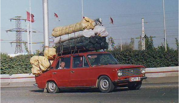 Базар оказался действительно здоровым, конца-краю нет, тысячи (может быть десять тысяч?) торговцев, тысячи контейнеров рядами, но в основном всё это тряпки из Китая. Продавцы – китайцы, узбеки и киргизы. Принимают и киргизские, и узбекские валюты. Там же тусуются побочные услуги: ребята и мужички с тележками и тележищами (помочь отвезти), тётки с газировкой и соками (выпить между покупками), нищие и прочие. Едва нашли нужную кружку (даже котелок). На базаре к нам прилепилась девушка-киргизка, лет двадцати, по имени Айжимал, мечтавшая поговорить с нами по-английски и помочь нам в поисках нужных товаров. Мы минут двадцать ходили с ней, пока не нашли повод с ней вежливо попрощаться. Понимала ли она русский, или же нет – осталось неясным, но говорила она с нами только по-английски. Но она успела узнать мой номер телефона и ещё две недели бомбила меня пустопорожними смс-ками.