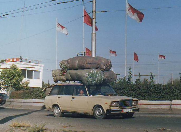 Слезая вниз, мы вышли на дорогу, ведущую в Ош. И тут у нас, первый раз за всю поездку, менты в городе проверили документы. Было 16 августа, день саммита ШОС (президенты разных стран встречались в Киргизии, но не в Араване, а в Бишкеке, в 700 км отсюда), и власти были начеку. А другой блюститель порядка, едучи на машине в Ош, подвёз нас прямо до центрального базара.
