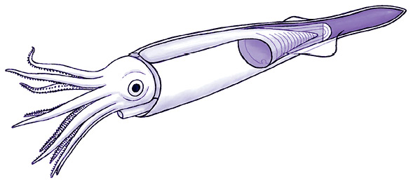 Вымерший головоногий моллюск белемнит. Внутри его тела находился твердый ростр, похожий на пулю.