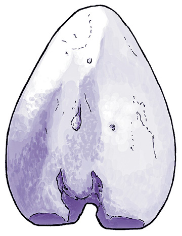 Есть и фигурки. Одну нашли в Норвегии, когда проводили срочные спасательные раскопки на стоянке позднего мезолита (6500–6200 лет до н. э.), по которой проходила новая автомагистраль. Окаменелость небольшая, с ягоду вишни: природный слепок раковины двустворчатого моллюска. Мезолитический мастер увидел в ней женские прелести – ягодицы, бедра, живот – и потратил немало времени, чтобы отполировать «живот» и подчеркнуть на нем естественную выемку – «пупок»[53].
