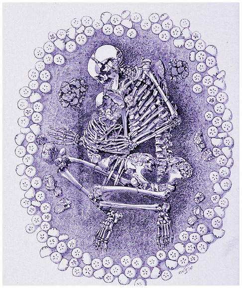 Спустя несколько лет Смит издал книгу «Человек – первобытный дикарь», которая стала бестселлером. Ее фронтиспис украшал рисунок погребения женщины с ребенком. Женщина обнимала дитя, словно Мадонна, а вокруг них лежало кольцо из панцирей морских ежей. Как красиво написал палеонтолог Мак-Намара, на этих покойников был надет саван из ископаемых ежей[62].