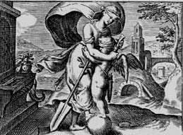 Постепенно Фортуна становится всего лишь персонификацией случая, выпадающего частному человеку. Свидетельство этой трансформации – появление ряда изобразительных сюжетов, где сведены вместе Купидон и Фортуна, как, например, в «Любовных эмблемах» Отто Ваения, 1608 и 1618 гг… У Ваения Фортуна, придерживающая весло кормчего и опирающаяся одной ногой на шар, закрывает повязкой глаза Купидону – тем самым подчеркивается роль случайностей в развитии любого романа – и характерно, что девизом для эмблемы выбран стих из «Писем с Понта» Овидия – «И благодарную речь я обращаю к судьбе».[28]