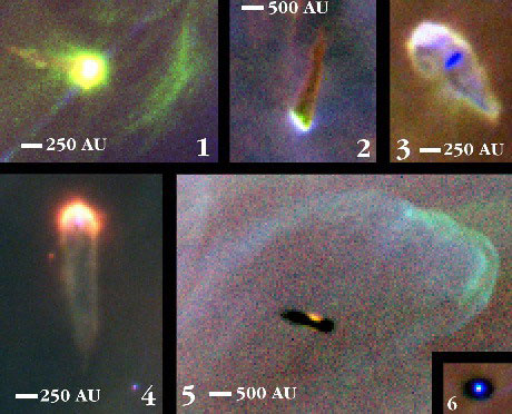 Рис.6. Пять протопланетных дисков в Туманности Ориона, сфотографированных «Хабблом».