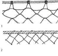 Рис. 9. Виды посадки, применяемой для бредней: 1 – жесткая посадка; 2 – упрощенная посадка.