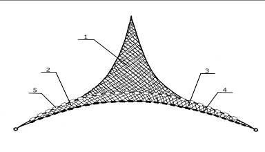 Рис. 11. «Курица»: 1,2 – клячи; 3 – мотня; 4 – верхний шнур; 5 – нижний шнур.