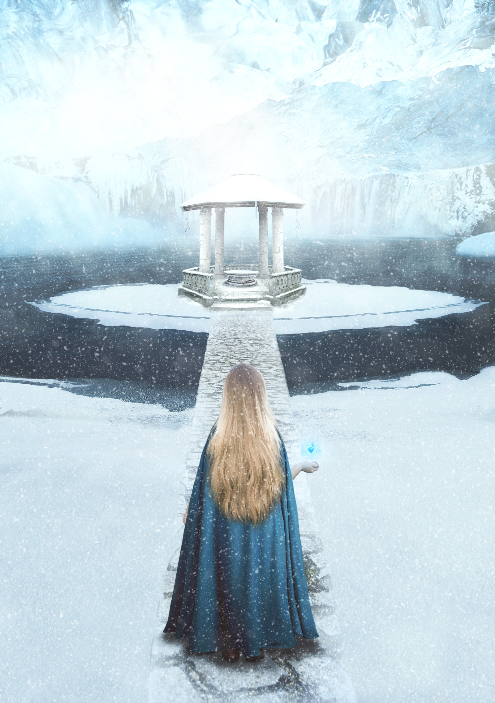 – Мечты сбываются! – не удержавшись, крикнула она и залилась смехом превосходства! Лишь на миг Воргана остановилась в столпе света на входе в Святилище. Поток холодного воздуха овеял её лицо, пар вырывался изо рта, сердце бешено колотилось, сознание плыло. Она очень волновалась, но сорвалась с места и вбежала внутрь. Оказалась она на небольшой площадке, перед внушительных размеров холодным озером. Вода в нём не замёрзшая, лишь по краям наблюдалось немного льда. Всё кругом покрыто инеем, было бело и ярко. С потолка, на котором сидели большие белые светящиеся пушинки, без остановки сыпал снег. В центре этого озера расположился островок, к которому вела схваченная льдом каменистая дорожка. На островке располагалась украшенная резьбой беседка, из неизвестного, но очень энергоёмкого материала. Стен со всех четырёх сторон не было, лишь колонны, на кромках крыши висели гирлянды-сосульки, которые издавали тонкую, звонкую и спокойную мелодию. Всюду лежал снег. Воргана, не боясь поскользнуться или упасть, побежала к беседке. «Сомнений нет, это оно, – пронеслось в её голове, – Святилище моего предка!» Беседка начала обретать чёткие очертания.