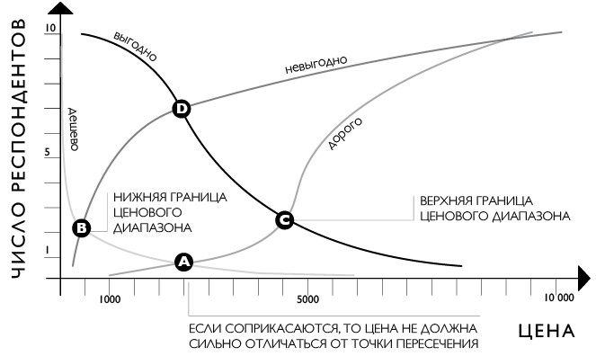 Итак, первый этап! Очень простой метод определения психологического коридора цен был предложен Питером ван Вестендорпом и применяется маркетологами уже более 50 лет. Он, к сожалению, не подойдет для точного расчета целевой цены, но зато укажет «психологический коридор» и не даст сильно «промазать». Для начала это и нужно.
