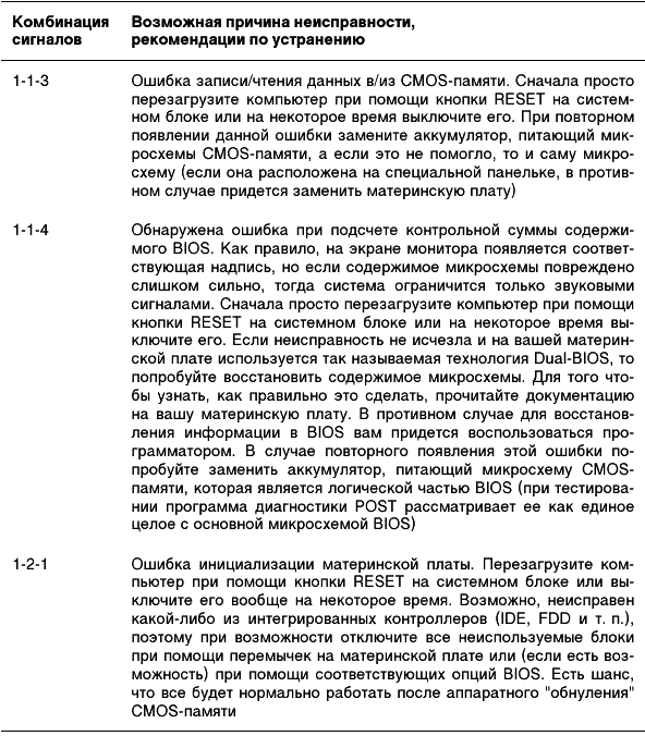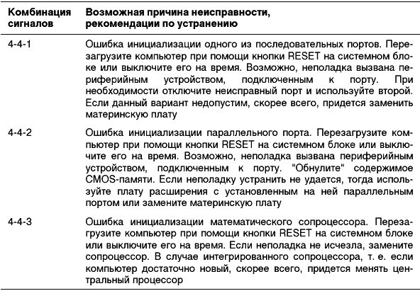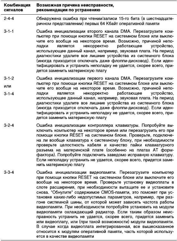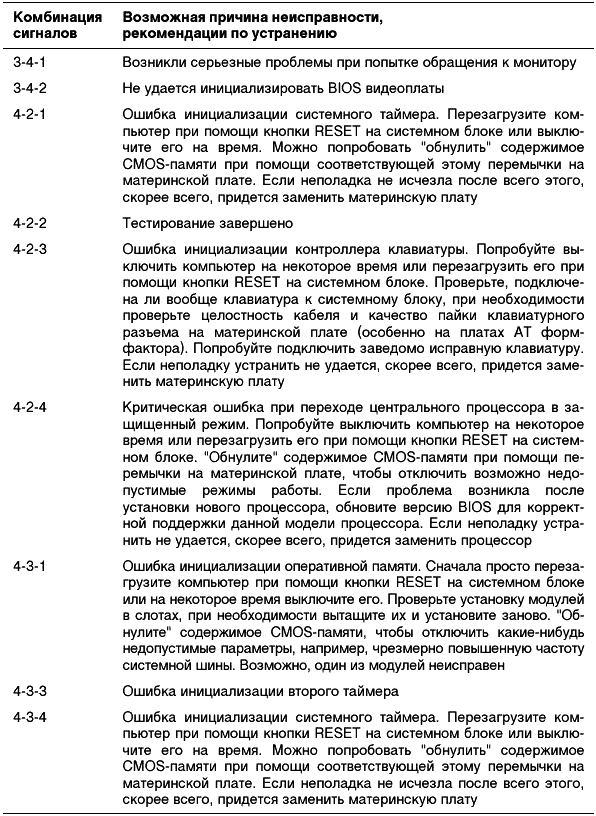 Таблица 2.3. Диагностические сигналы, характерные для большинства версий Phoenix BIOS