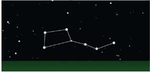 The appearance of the Plough we know and love really depends on where we live. In the northern hemisphere it may be visible whenever it’s dark. However, the further south you go, the less you see of it. Around 23°S it appears low over the northern horizon only during evenings in April – and even then it’s upside down!