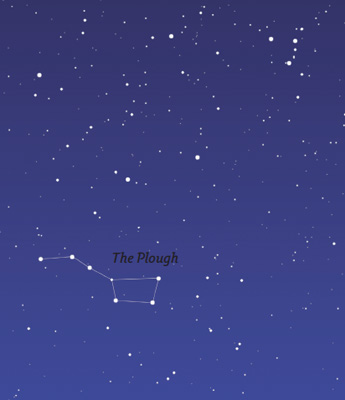 Now, the Plough is not actually a constellation itself, but part of a much larger group called Ursa Major, the Great Bear – we shall meet it very shortly.