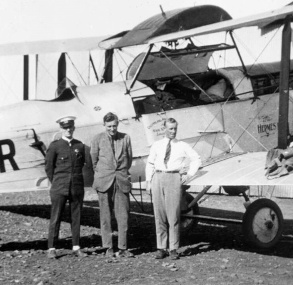 Первый неофициальный вылет «AMS»; слева направо: сотрудник медицинской транспортной службы Джон Лиссон (John Lisson), доктор Джордж Симпсон, пилот Норман «Билл» Эванс (Norman «Bill» Evans), 02.08.1927 г.31