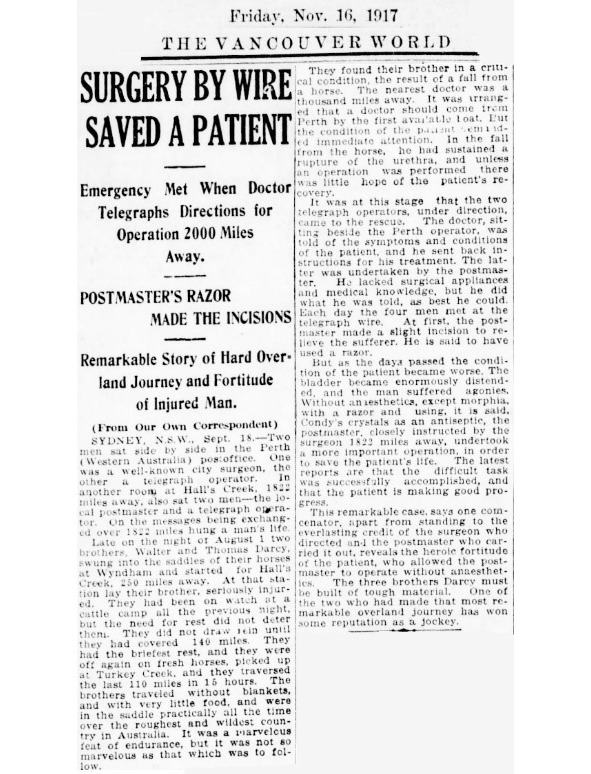 Заметки о «хирургии по телеграфу» в австралийских газетах (август-сентябрь 1917 г.)12