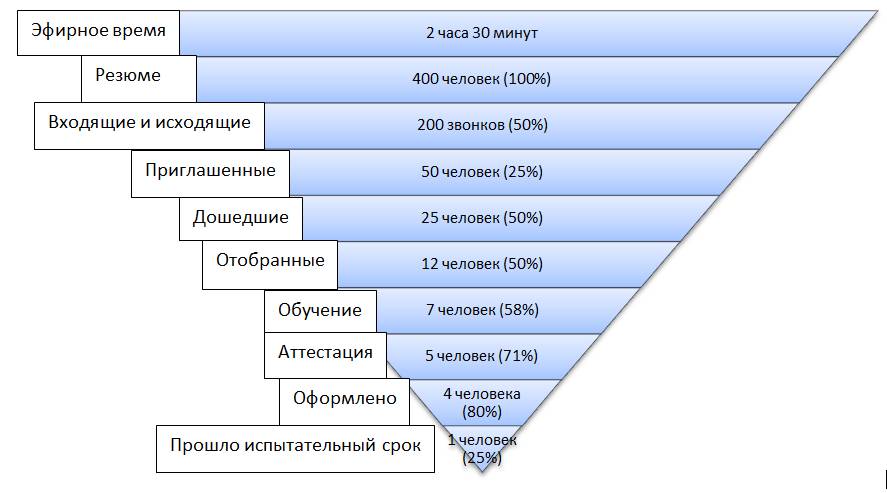 Пример воронки рекрутинга по подбору менеджеров по продажам.