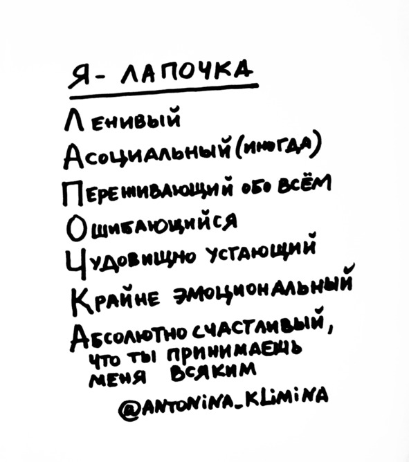 Разрешение себе не быть самым красивым, сексуальным, веселым и остроумным, быть обычным и не исключительным – освобождает.