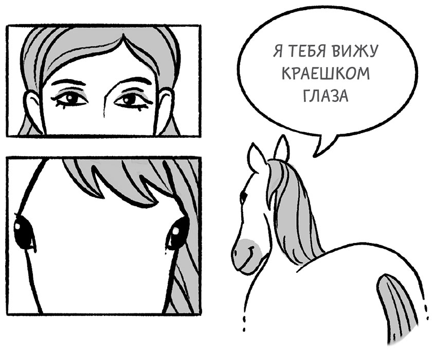 Если вы видите хотя бы краешек глаза лошади, то и лошадь видит вас.
