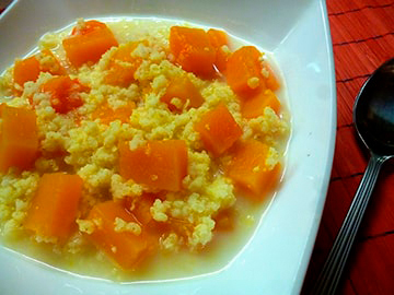 Рекомендую включить в свой рацион пшенную кашу с тыквой. Это не только очень вкусно, но и полезно – сочетание овощей и сложных углеводов. Особенно хороша для утренней каши мускатная тыква, она имеет более выраженный вкус и аромат.