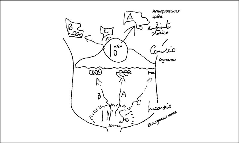 На эту ситуацию бессознательное откликается неким сообщением в виде графического изображения. Если субъект Z выберет направление В, бессознательное создаст другое графическое изображение; при выборе ситуации С – третье, таким образом, ZA дает один график, ZB – другой, a ZC – третий, абсолютно отличающийся от двух предыдущих.