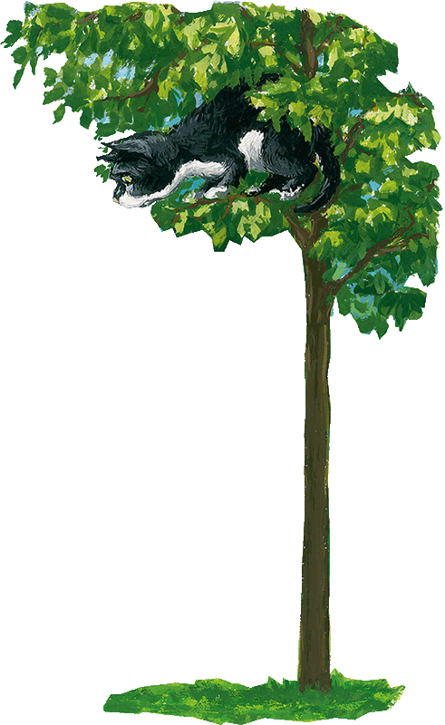 А кошке хоть бы что. Она опять на дереве. Беда!