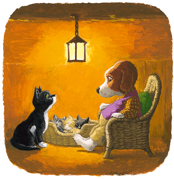 – Спасибо, пёс Артос! Моя семья дружить с тобой готова. Клянусь, я буду верным другом. И я сама, и мои крошки. Вот тебе слово честной кошки.
