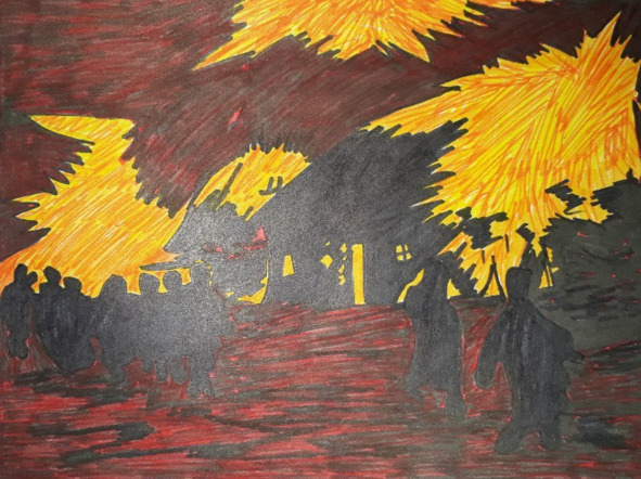 Горящая Хатынь – 1942г. Иллюстратор: Алёна Колесова. 2017г.