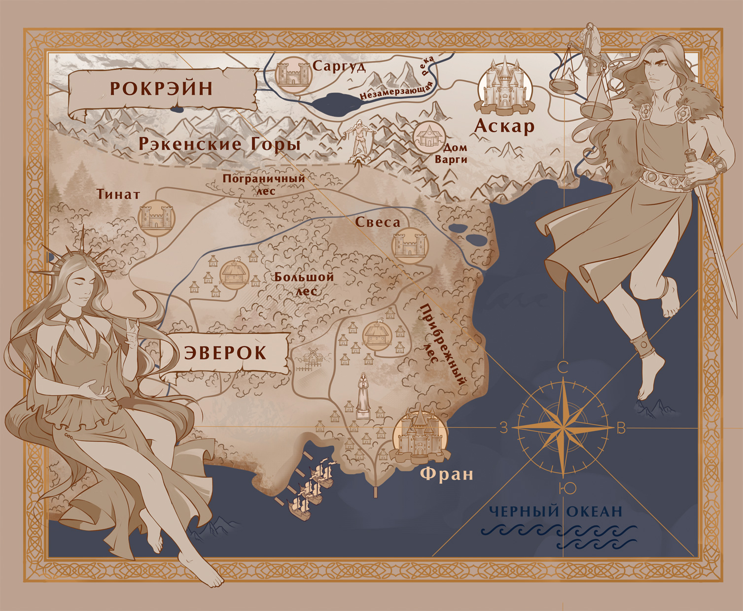 Корабль сбросил якорь, который тотчас скрылся в черном песке. Они стояли на месте, покачиваясь на волнах, а на горизонте виднелись Эверок и высокая статуя святой Эвер, руками тянувшаяся к солнцу, которое скрылось за собирающимися в пасмурном небе тучами.