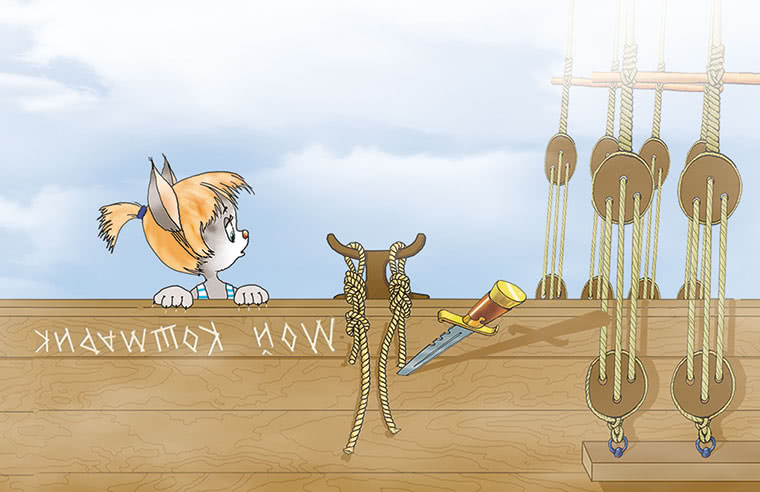 – Ерунда какая! – Утя-Путя вручила Мыше кинжал. – Со всеми что-нибудь случается. Скелет, прыгай в шлюпку – мне нужен спасательный трос! Рубите все, что смахивает на веревки. На толстые и прочные веревки!