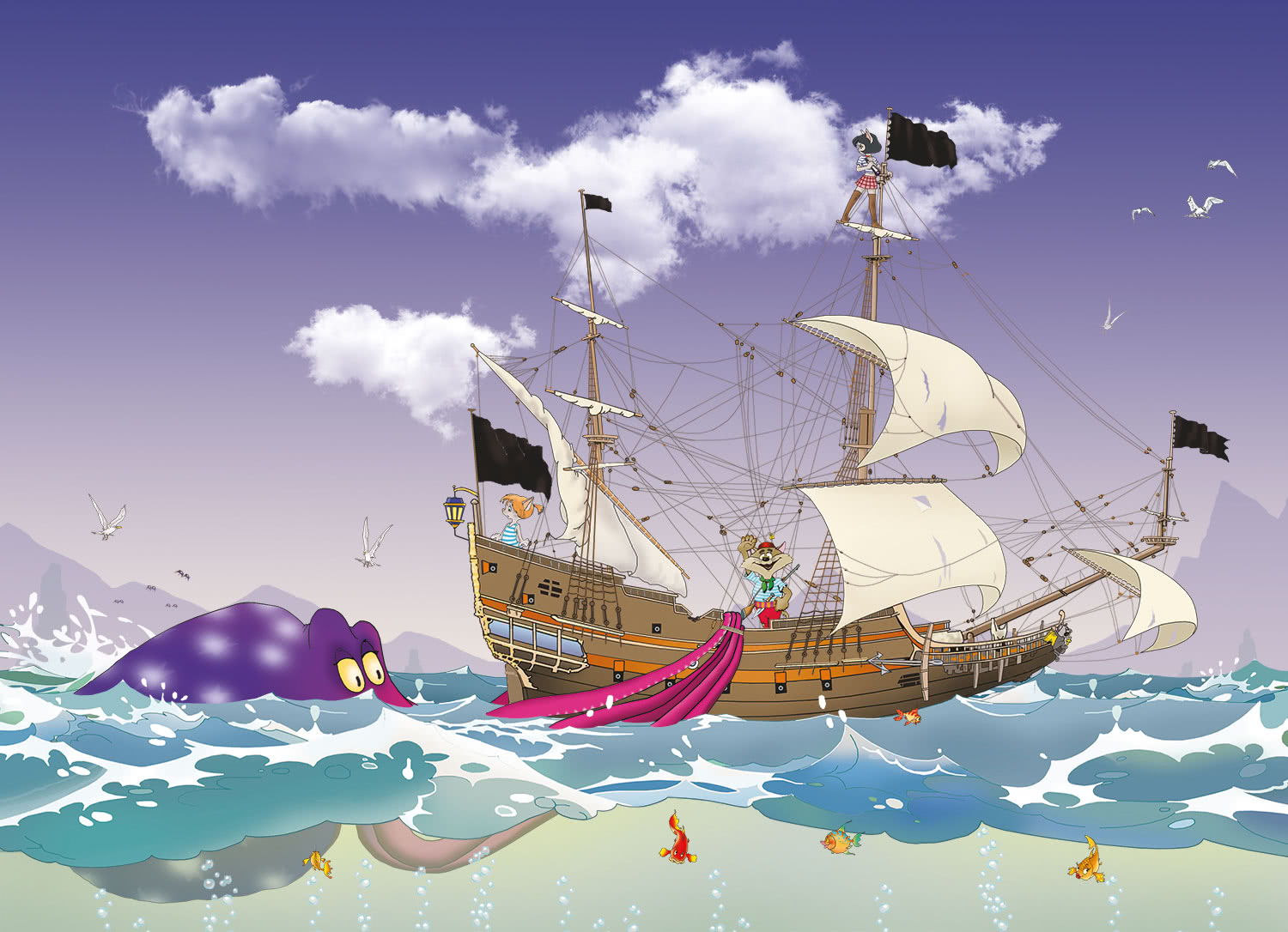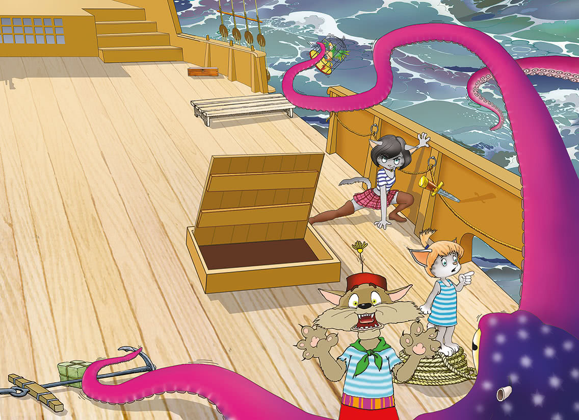 Она тянула за собой семь крепко связанных щупальцев. Мыша забыла про страх и выглянула за борт: обездвиженный кальмар болтался позади корабля, от злости или из вредности окрашивая воду чернилами.