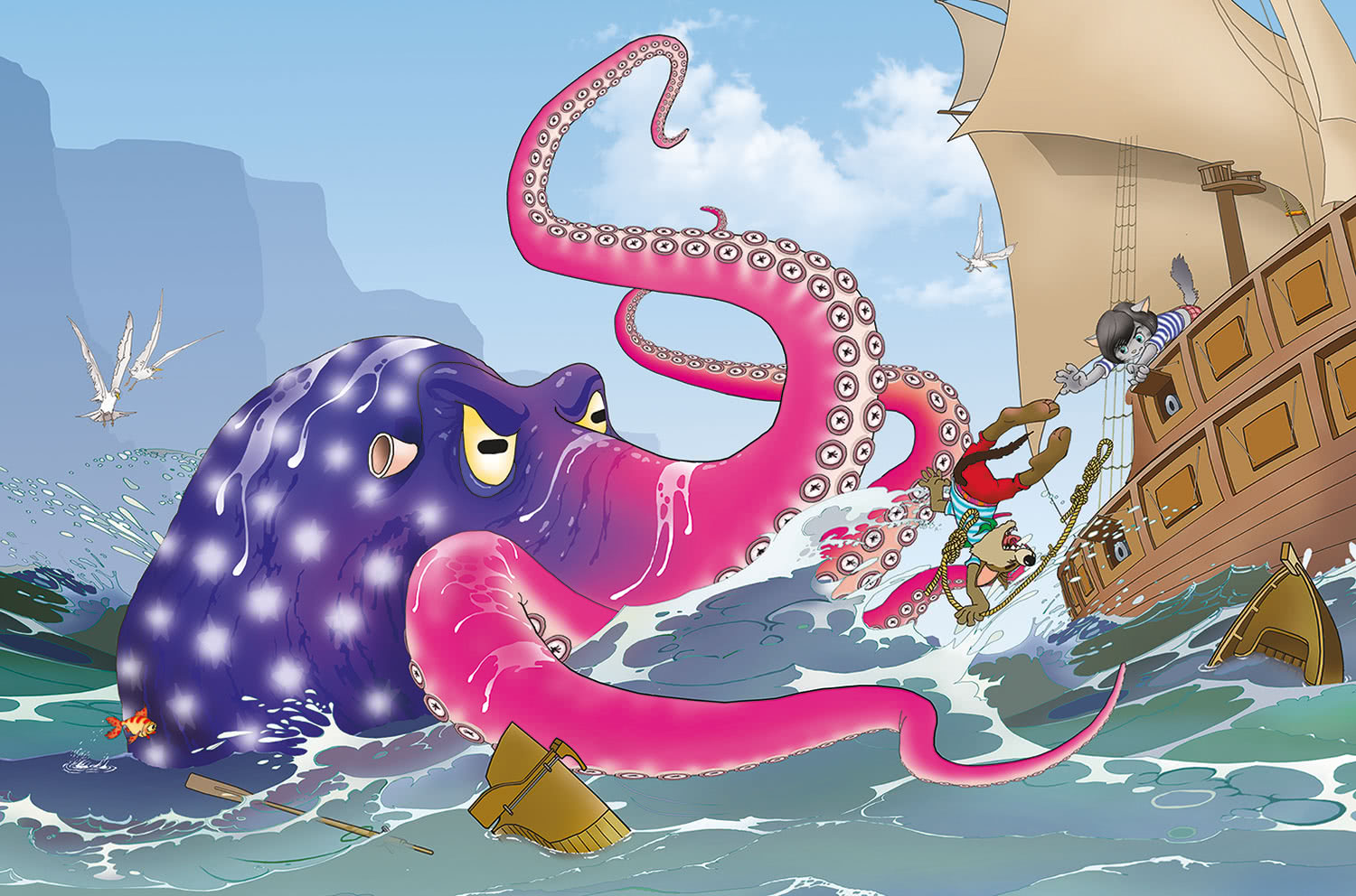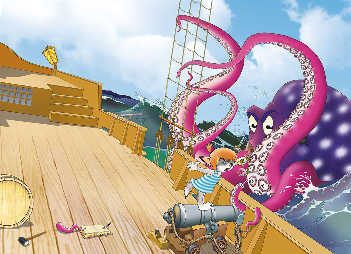 Прямо по курсу над морем Тысячи Островов восставал лиловый кальмар, раздувшийся до размеров небольшой каравеллы. Похожий на странный коралловый остров, он протягивал к маленькому кораблю длинное щупальце, словно хотел раз и навсегда пришвартовать к своим берегам непослушное судно.