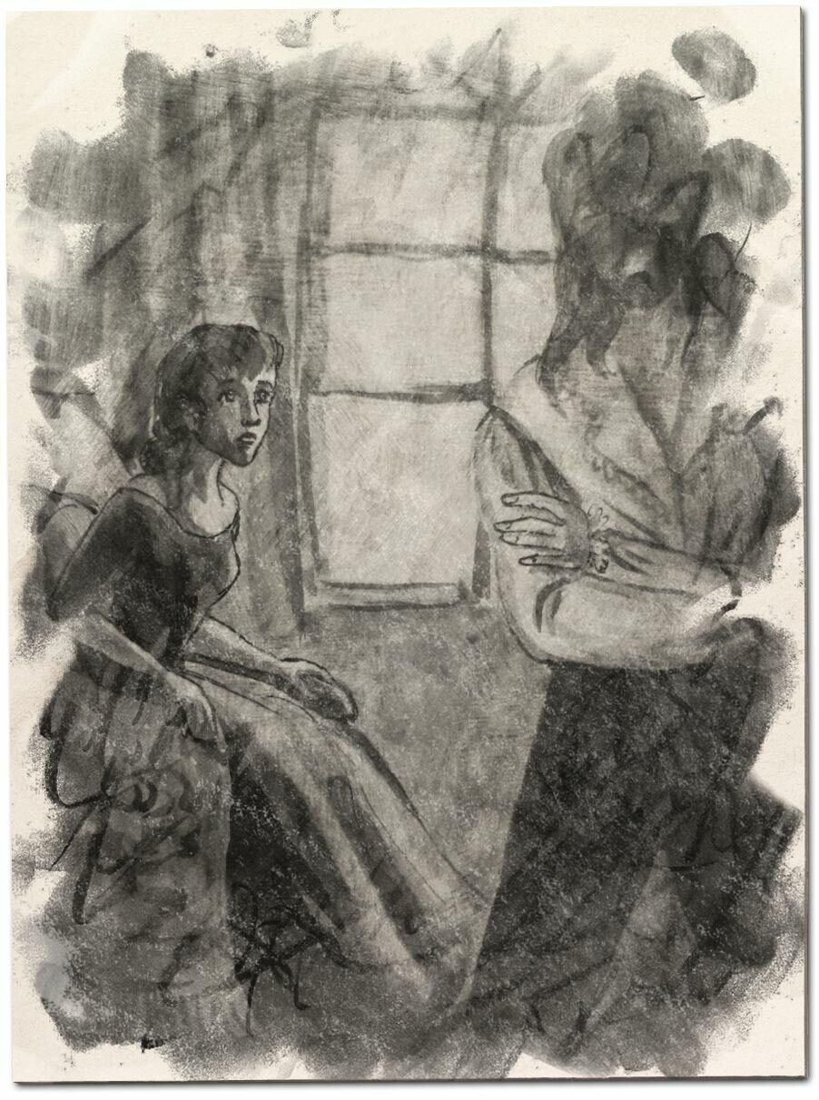 – Однажды она прибежала ко мне сильно напуганная и сказала, что была в Запретной комнате и увидела там что-то ужасное. Бедняжка вся дрожала. Она даже боялась спать в своей комнате. Я приютила ее у себя. Во сне она бредила и говорила о каких-то огненных письменах. После этого Елена ненадолго успокоилась, но затем призналась мне, что постоянно вспоминает эту комнату. Там была какая-то дверь. Девушка считала, что разгадка именно за ней… Как-то днём мы бродили вдвоем по дому и мечтали. Собаки тогда не разгуливали по коридору, они появились много позже, и мы были вольны ходить там, где нам захочется. Конечно, не все двери для нас были открыты, но многое позволялось. Так вот, Елена выразила желание ещё раз заглянуть в Запретную комнату. Ее страхи уже улеглись, и любопытство разгорелось еще больше. Я хотела ее сопровождать, но она отказалась, сказав, что если пострадает, то только она. Мы распрощались перед сном, и больше я никогда ее не видела, – Анастасия удрученно замолчала.
