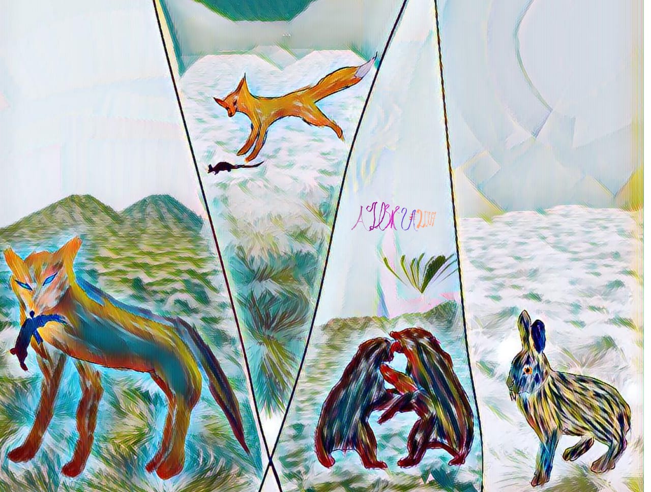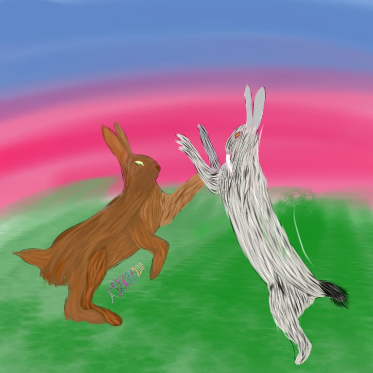 И вот, гордый заяц держал в зубах 5 кабачков. Его друг Сильша был в полной готовности, чтобы вмазать хорошенько тому, кто посмеет переступить черту и наброситься, защищая урожай. Зайцы шли, но странный звук не прекращался. Тогда Авранду остановился и стал оглядываться.