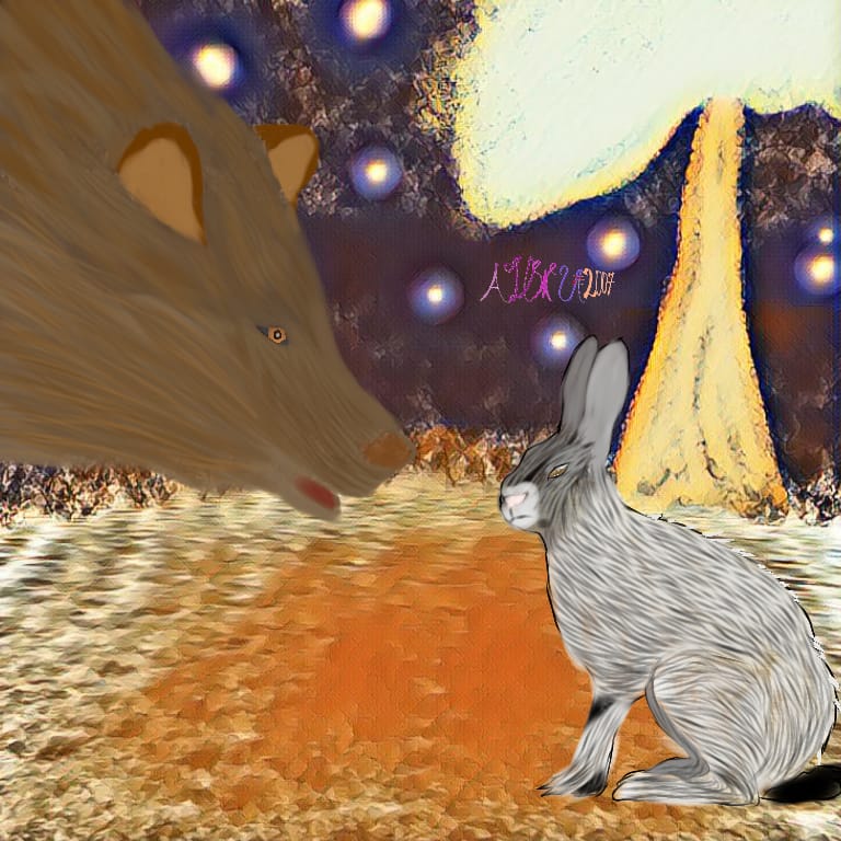 Спустя время, зайцы были на месте. На них смотрел огромный и сильный, пропитанный ягодами и корешками медведь. У Авранду подкосились лапы, но он не отступил, а начал подходить.