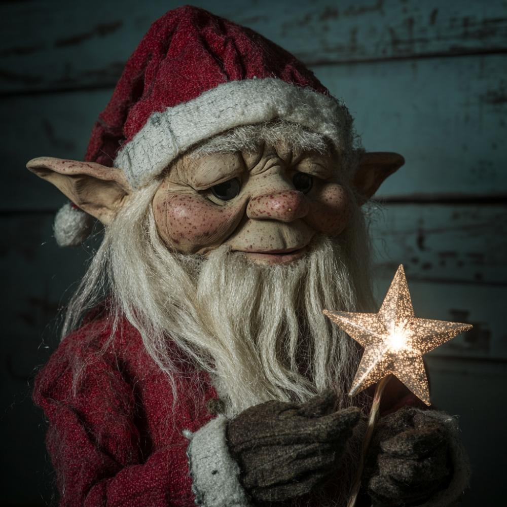 Йоль – ввремя зезу. Это маленький тролль, который каждый год хочет украсть горящую звезду с верхушки рождественской елки. Жадный воришка хочет, чтобы звезда сияла только для него. Но это ему пока никогда не удавалось, кроме как в декабре 1740 года, когда он обманул всех, надев костюм деда мороза, и ненадолго утащил звезду к себе в нору.