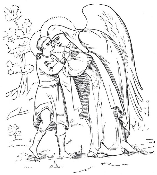 Умилился старец от таких речей малого отрока; он видел его усердие и, любуясь красотой детской души, отражавшейся на его кротком лице, воздел руки, возвел очи на небо, вздохнул к Богу из глубины сердечной и стал молиться, испрашивая дитяти просвещения свыше… О, как пламенна была эта молитва таинственного старца под открытым небом, под тенью дуба, и с каким трепетом надежды соединял с нею свою чистую детскую молитву блаженный Варфоломей! В этом трогательном единении двух душ – убеленного сединами старца и малого отрока – их общая молитва, как чистый фимиам, восходила на небо и достигла престола Всевышнего…