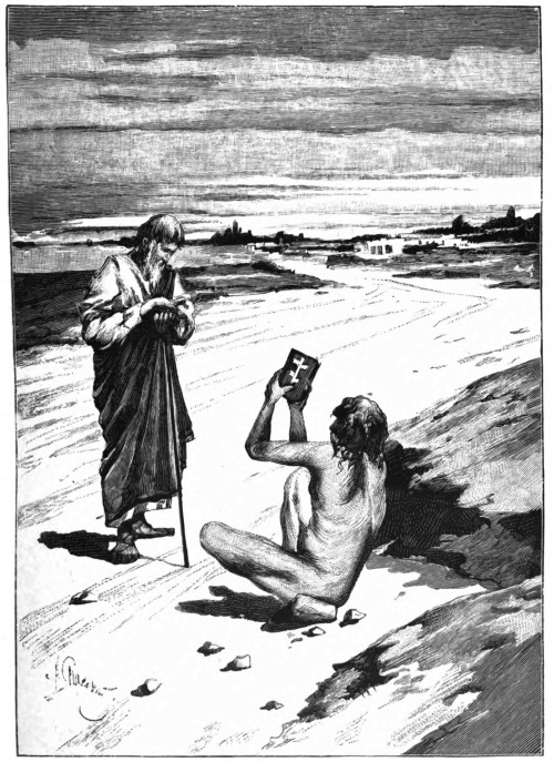 Он снял с себя синдон и отдал нищему; потом сел нагой на дороге, держа в руках Святое Евангелие.