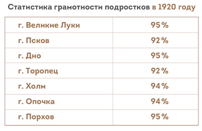 Уже в Советской России, в 1920 году, решили провести первую социалистическую перепись населения. Среди прочих заказчиков исследования был и Наркомат просвещения, поставивший задачу: определить процент грамотности среди детей и подростков в доставшейся большевикам в наследство «дремучей» России. И тут неожиданно обнаружилось, что процент грамотности среди молодого поколения не просто высок. А необычайно высок!