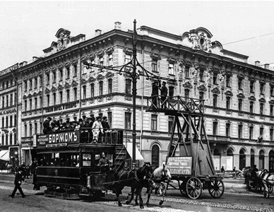 Установка электрических проводов для трамвая. Санкт-Петербург, 1907 г.