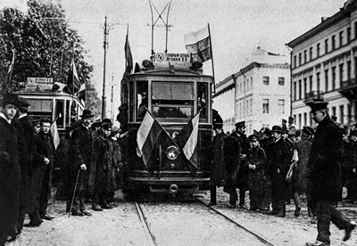 Торжественный запуск первого электрического трамвая в Санкт-Петербурге. 16 июля 1907 г.