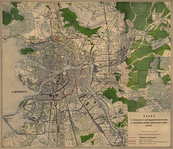 Императорский план Санкт-Петербурга с показанными линиями проектируемого метрополитена