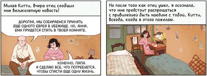 Графическая версия «Дневника» на русском языке публикуется впервые. Перевод частей оригинального дневника публикуется по изданию: Дневник Анны Франк. М.: Текст, 2016.