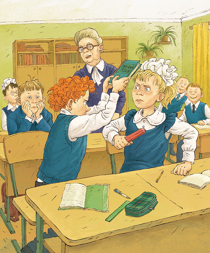Римма Анатольевна выставила нас обоих из класса. В коридоре мы не стали драться. Неинтересно, когда никто не видит. В книгах пишут: «Она испепелила его взглядом». Я попробовала «испепелить» новичка, а он сказал, что я похожа на быка. Мне сделалось смешно, и мы расхохотались. Оказывается, новичок раньше жил в деревне. У них в семье была корова, были свиньи и куры, совсем как у моей бабушки. Я сразу перестала сердиться и первой подала ему руку: