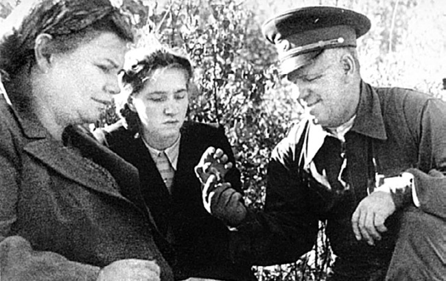 Эра Георгиевна: Спустя какое-то время отец собрал у нас на даче своих друзей – военных. Среди гостей были Буденный, папин старинный друг генерал Крюков с женой Лидией Руслановой, Горбатов, Чуйков, Ротмистров, Руденко и другие. Это был веселый вечер – были тосты, танцы, песни. Русланова пела, папа взялся за баян.