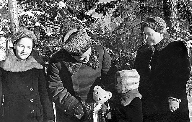 Эра Георгиевна: Там, в Перхушково, мы провели несколько незабываемых дней. Мы наконец-то были рядом с отцом. Он был в приподнятом настроении – первый большой успех наших войск. Была чудная погода, все было покрыто снегом, и, когда была возможность, мы катались на лыжах. Но, к сожалению, пробыть там удалось совсем недолго. Все-таки шла война, то и дело были слышны выстрелы. Один раз я вышла погулять и забрела куда-то не туда. Человек из охраны меня буквально оттащил.