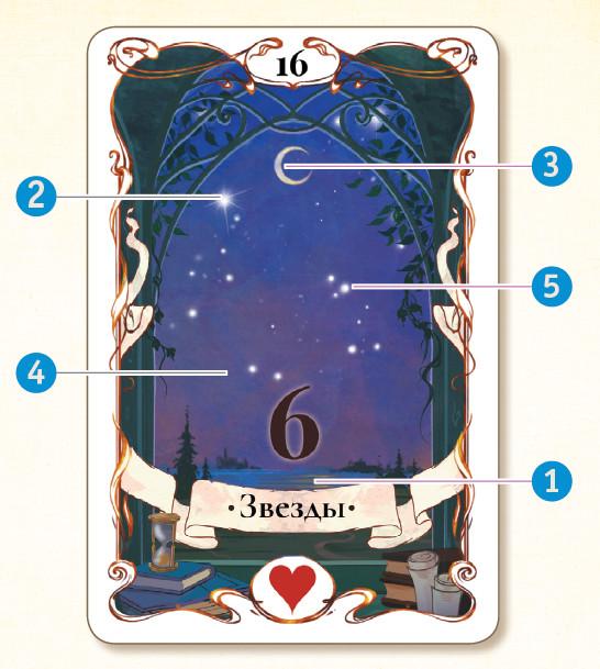 На карте изображены чистое небо и ярко сияющие звезды. Они освещают дорогу путникам, наполняют сердце спокойствием и умиротворением. Также звезды призывают человека к его истинному пути.