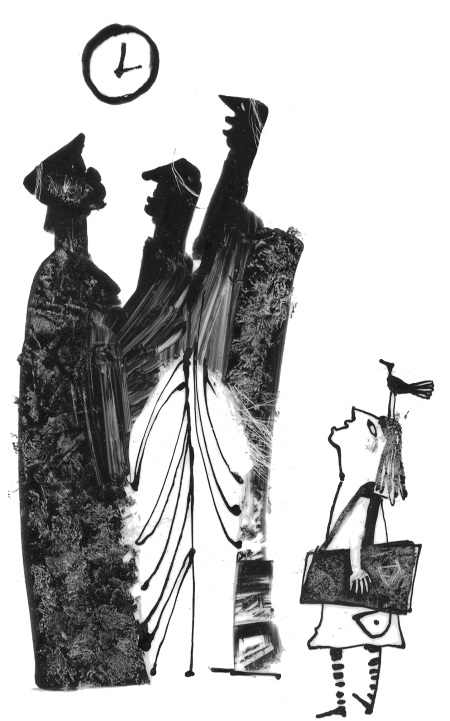 И вот однажды утром народ, спускающийся по лестнице, увидел свою совесть: эта была седая голая женщина лет восьмидесяти, живущая в квартире номер семь. Безобразна, как правда. Оскорбительна, как правда. Она тоже спускалась куда-то со всеми вместе, затем остановилась, обернулась и начала кричать всем правду в лицо: «Ты с…!»…