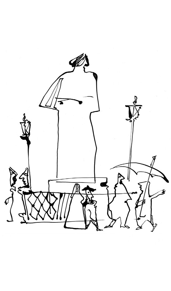 Мы все привыкаем к жизни – а жизнь привыкает лишь к некоторым. Вот к Николаю Васильевичу она привыкла. Он теперь вечно стоит тут, на Малой Конюшенной, а сверху идёт вечный дождь.