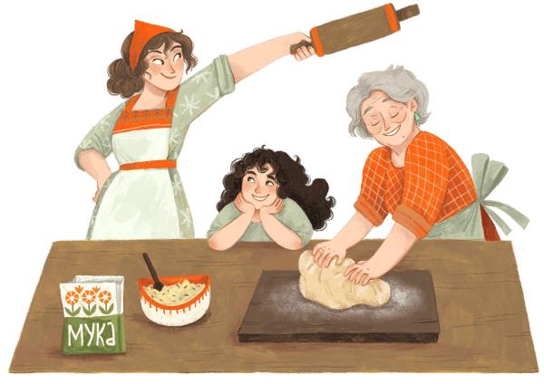 – Как там ваши пироги? Готовы? – крикнул он с порога, шагнул вперёд и в удивлении замер: в кухне всё было припорошено мукой, стол в ошмётках теста, а мама с бабушкой молча смотрели друг на друга.