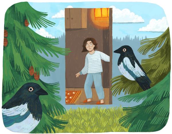 «Сорока опять прострекотала то же самое. Ане показалось, что она и правда обращается к ним. Кто их знает, этих жителей другого мира. Может, они всё понимают?»