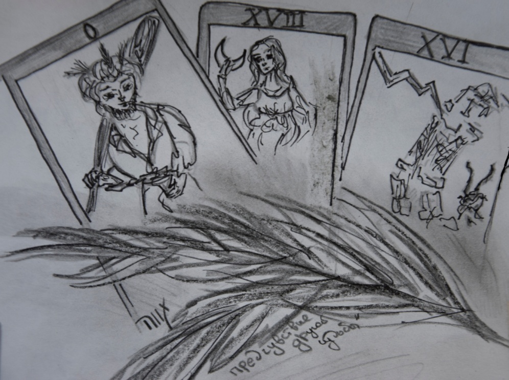 – Сейчас ты должна освободить свою голову от лишних мыслей и сосредоточиться, – сказала я, – закрой глаза и мысленно попроси карты Таро рассказать о твоей жизни: прошлое, будущее и настоящее. Теперь ты должна перетасовать их и, вытащив верхнюю, положить ее слева, дальше из середины, и клади ее следом, последнюю из—под низа. Открывай глаза, отложи другие карты и раскрой эти три.