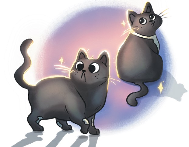 Тогда Степан взобрался на табуретку возле окна, выглянул во двор и… никого не увидел, кроме двух сидящих под дверью чёрно-белых котов. Вдруг один из них поднял лапку, сжал её в кулачок и громко забарабанил в дверь.